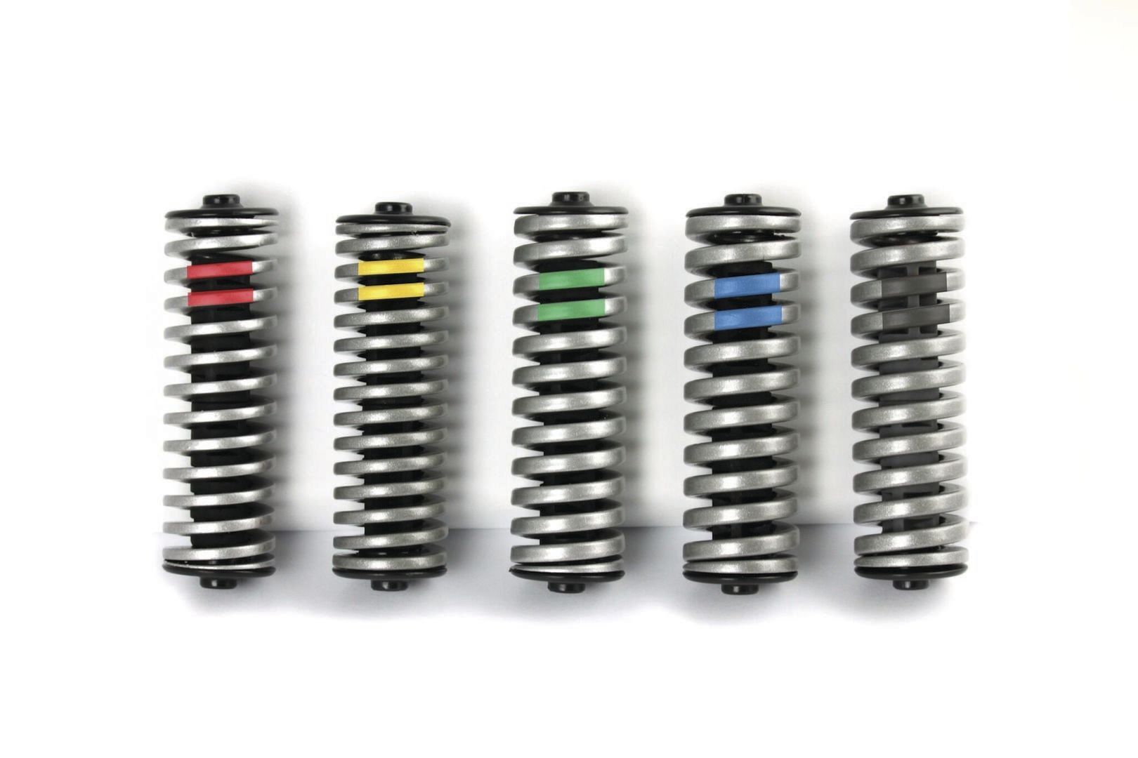 LangbeschreibungAustausch-Federelement<br>für by,schulz Sattelstützen<br>Grundfarbe silber mit Farbcode<br>für Härteprofil/ Fahrergewicht<br>Flachdrahtstahlfeder mit innenliegendem<br>Elastomer<br>Länge: 102 mm